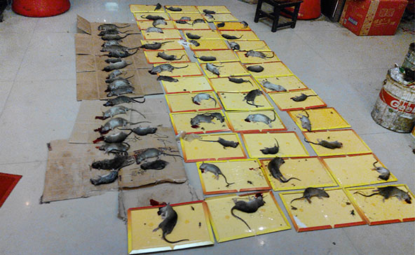 3、做好以上步骤,我们紧接着需要对室内的鼠害进行控制,一般会采取一些物理防鼠措施,比如在一些鼠类可能经过的路径上布放鼠板、鼠夹、鼠笼、驱鼠器等,在鼠密度较高的前期,我们可以考虑在餐饮区布放电猫,往往会取得很好的效果,物理方式灭鼠可以很大程度上避免对环境造成污染。建议大家使用粘鼠板作为重要的灭鼠物理设备。